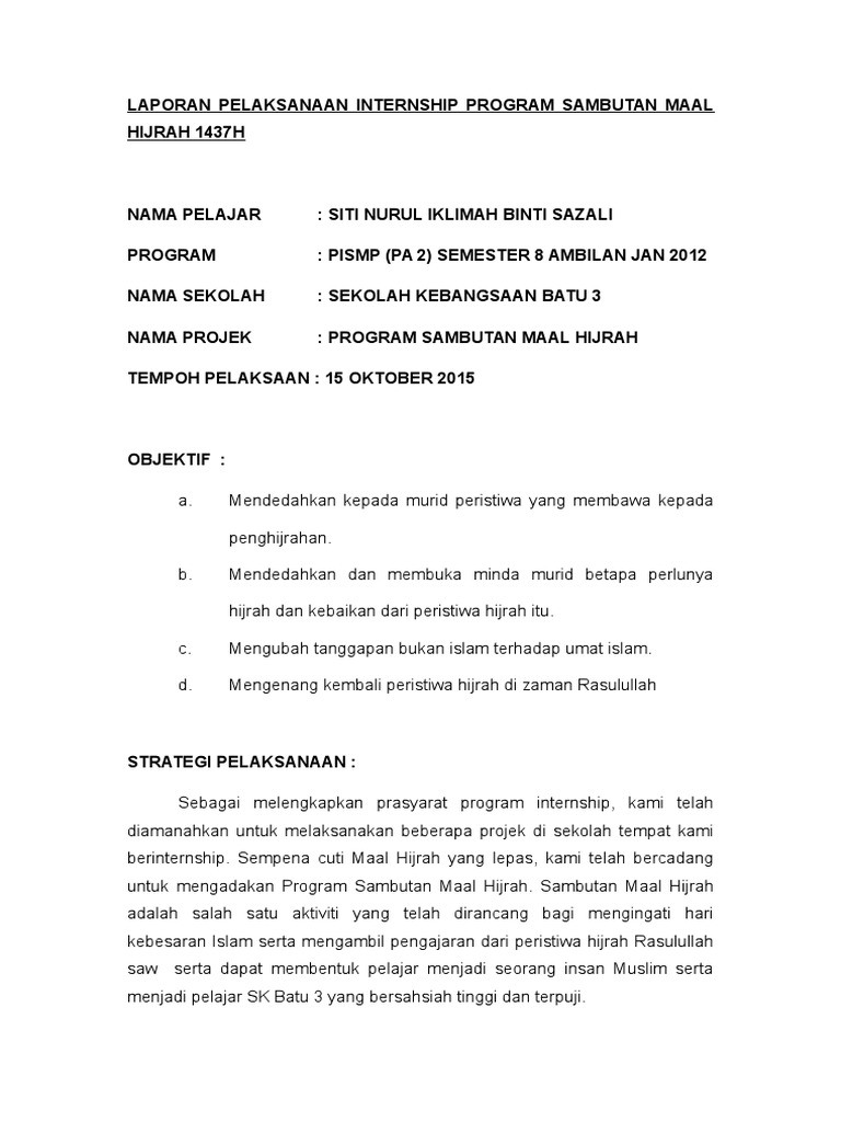 Laporan Pelaksanaan Internship Program Sambutan Maal Hijrah 1437h Pdf
